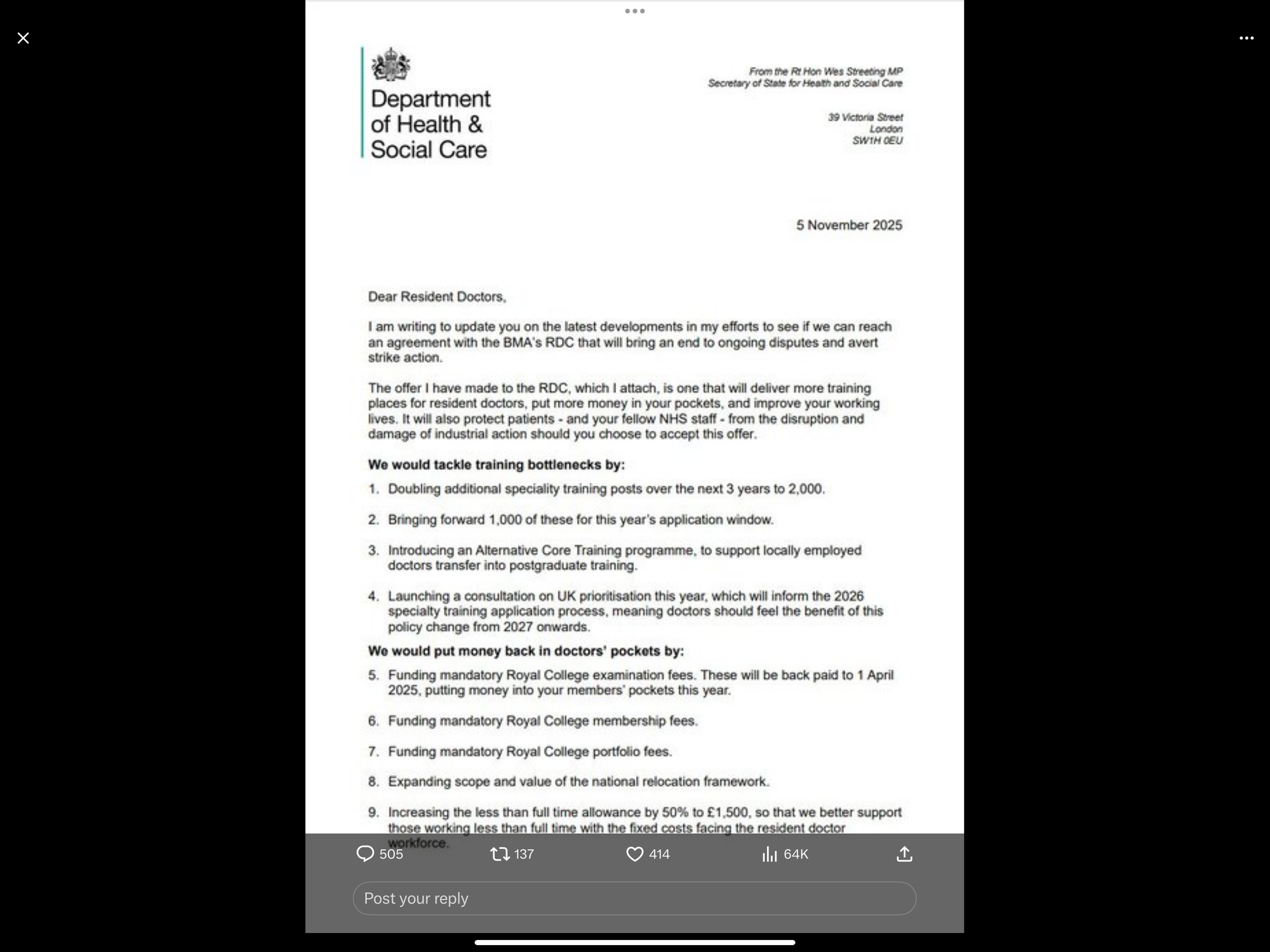 But they didn’t, and so the BMA have agreed trying to extend their strike mandate in January 2026. Even with this ‘Doctor’s Vote’-pleasing prospect, BMA internal discontent (both staff-side and member-side) about how it’s all going resulted in these briefings to the friendly ear of The Guardian’s Denis Campbell. Denis even notes that the Doctors Vote entrust grouping imploded earlier this year, amid what one insider called “horrendous infighting”.